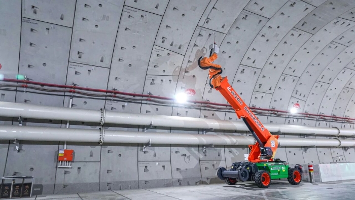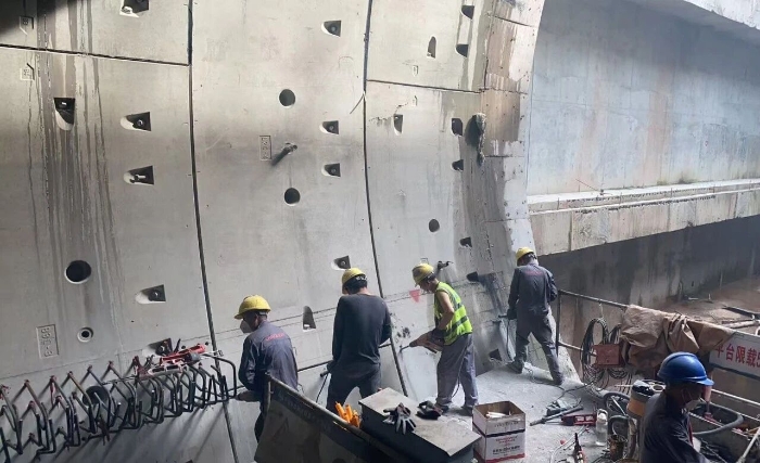 近期,隨著項(xiàng)目推進(jìn),隧道內(nèi)部開(kāi)始進(jìn)入機(jī)電安裝、管線敷設(shè)階段,需在堅(jiān)硬的混凝土管片上進(jìn)行數(shù)以萬(wàn)計(jì)的高精度鉆孔。粉塵控制、高空作業(yè)安全、毫厘不差的精度要求,在密閉、富水的超長(zhǎng)隧道空間中,被無(wú)限放大。